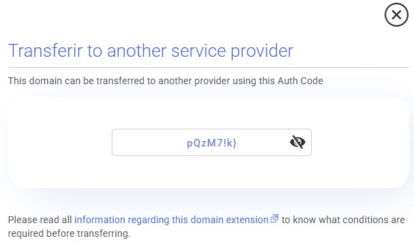 Automatically, it will show you the AUTH CODE in order to transfer your domain.