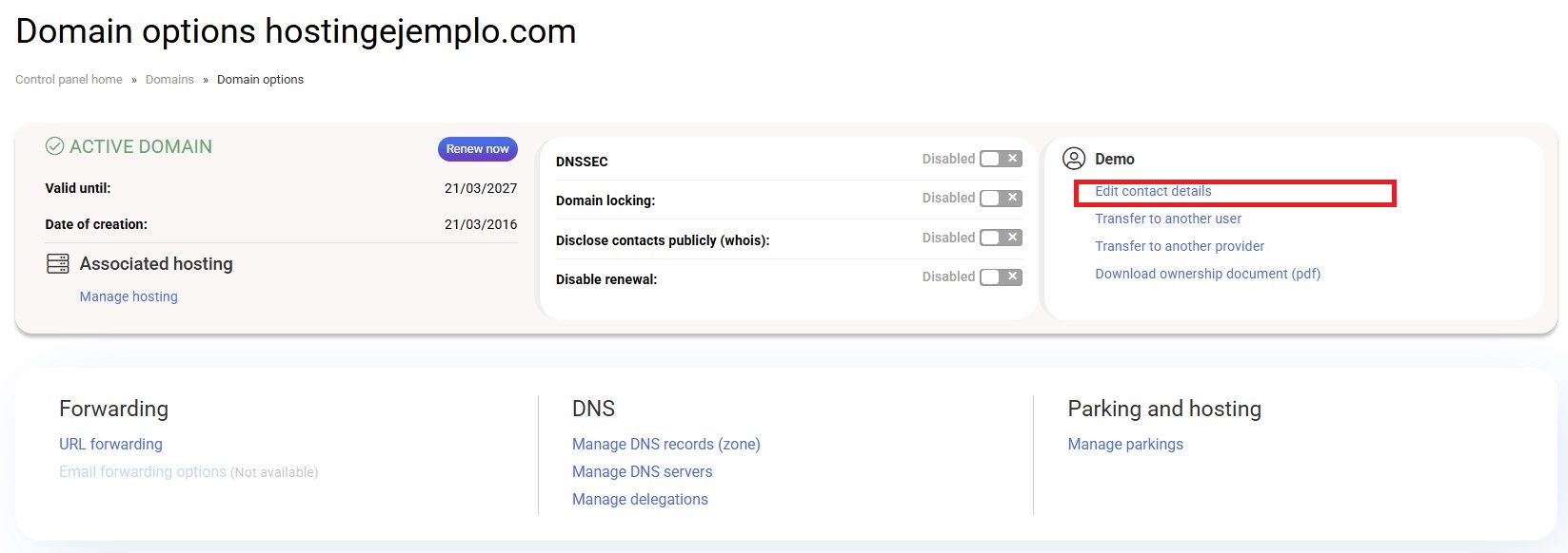 Domain Operations: Modify contact details