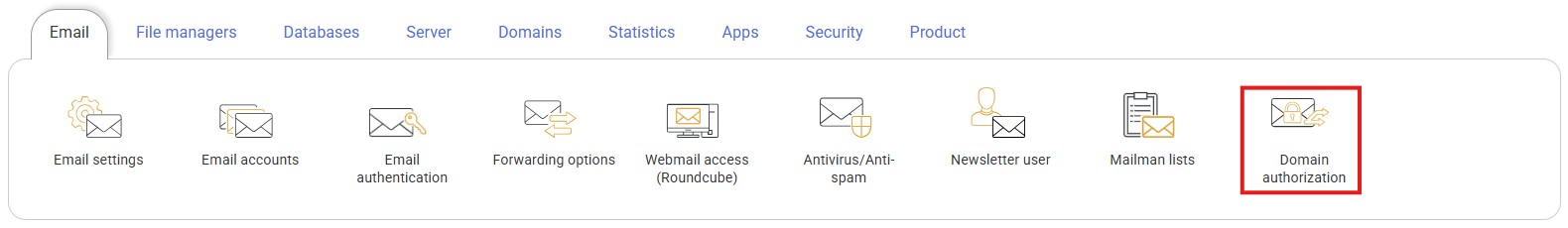 First of all you must access hosting management where you want to add this authorization. In the "Email" section you should go to "Domain authorization"