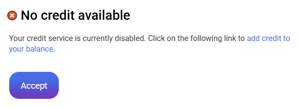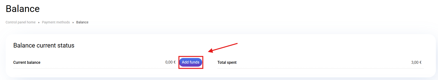 If you do not have activated the balance the system will redirect you to the option of adding balance to your user. Click on add balance to your account.