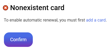 Once the card is added it returns to the first step and activates automatic renewal using the card payment method.