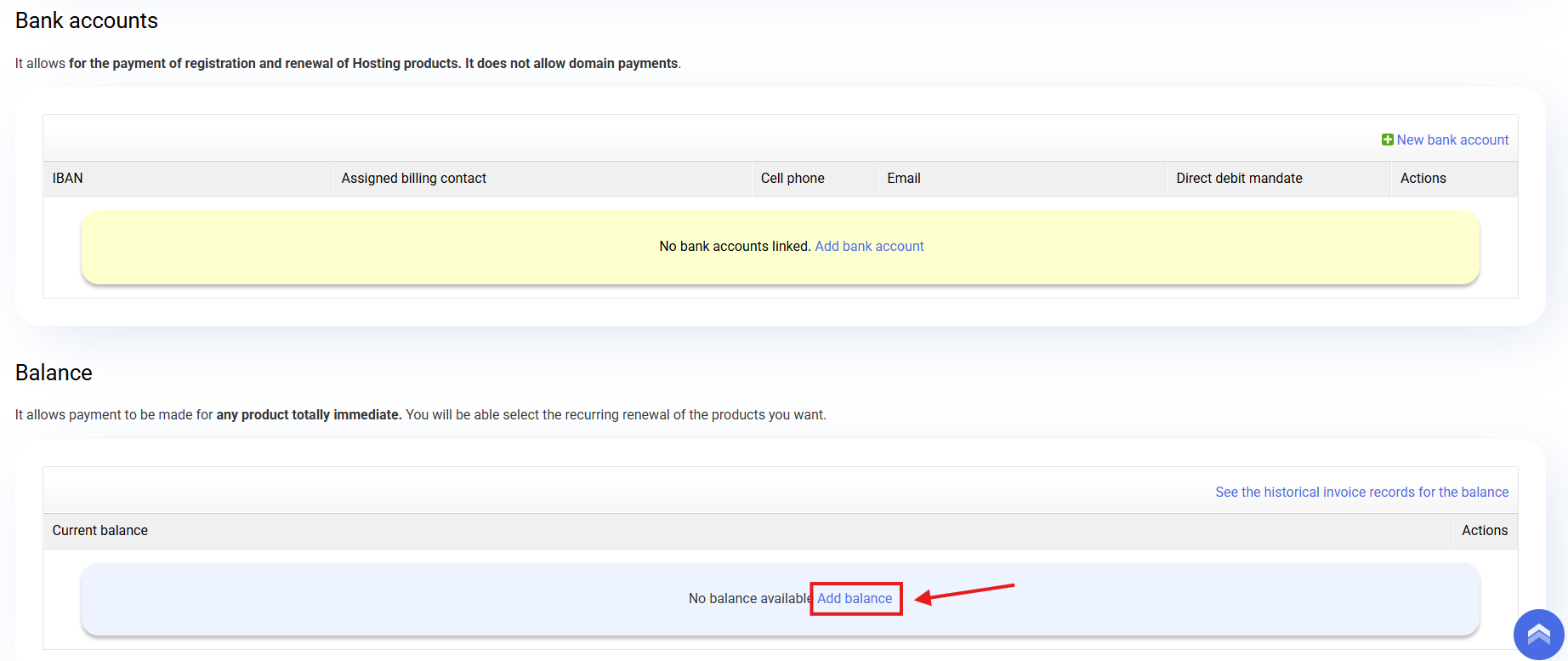 On the other hand, if you select the option as a payment method Balance and you already have that option enabled before, the domain will automatically be linked to balance renewal.