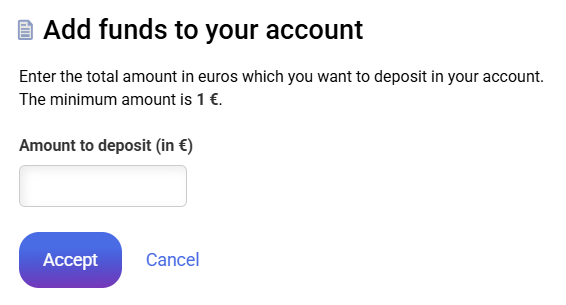 A window will open requiring the amount of balance we want to enter. It is important that this amount is in Euros €.