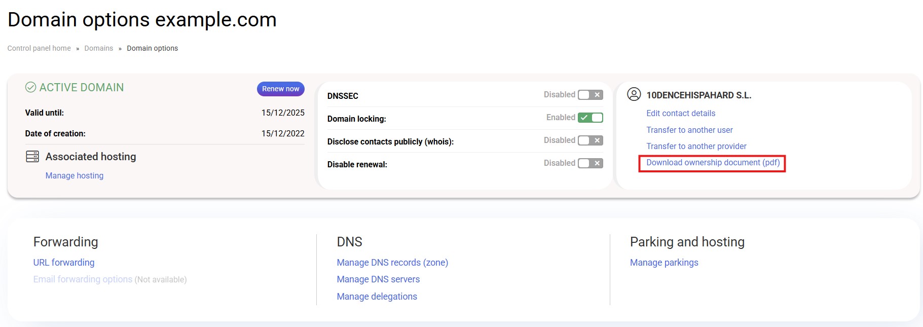 For this reason, if you own a domain and need to credit that property, you can generate a domain ownership document in PDF format from your dashboard cdmon.