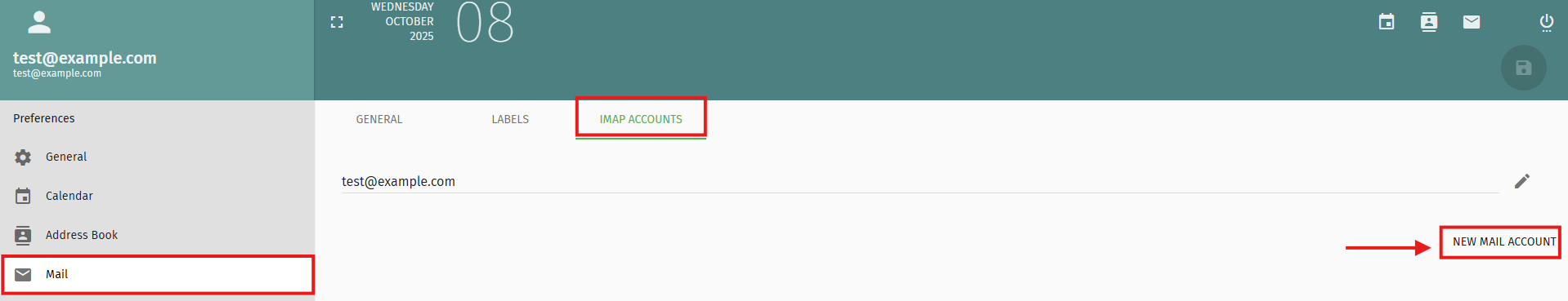 - By default, you will see your main account listed. To add a new one, click the "New mail account".
