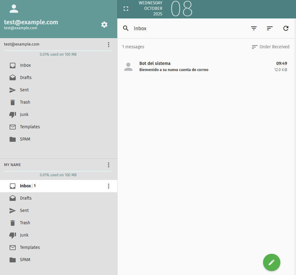 By clicking on the new account, you will be able to access your inbox and all your folders (Send, drafts, etc.).