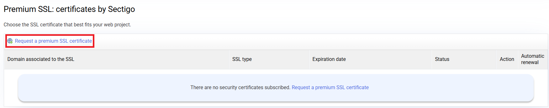 If you want a Premium certificate, on the same screen you must click on the option Request a Premium SSL Certificate.