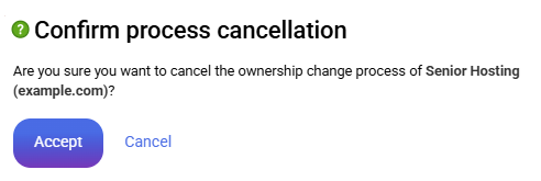 If you decide to interrupt the process for any reason, you can cancel it by clicking the Cancel button in the “Cancel ownership change” section, which will display a confirmation panel to approve the cancellation of the process.