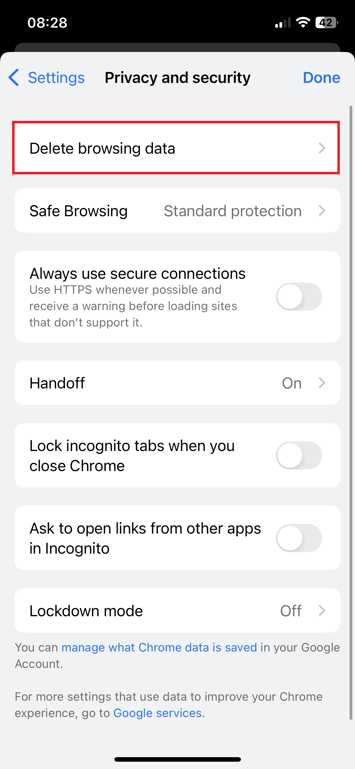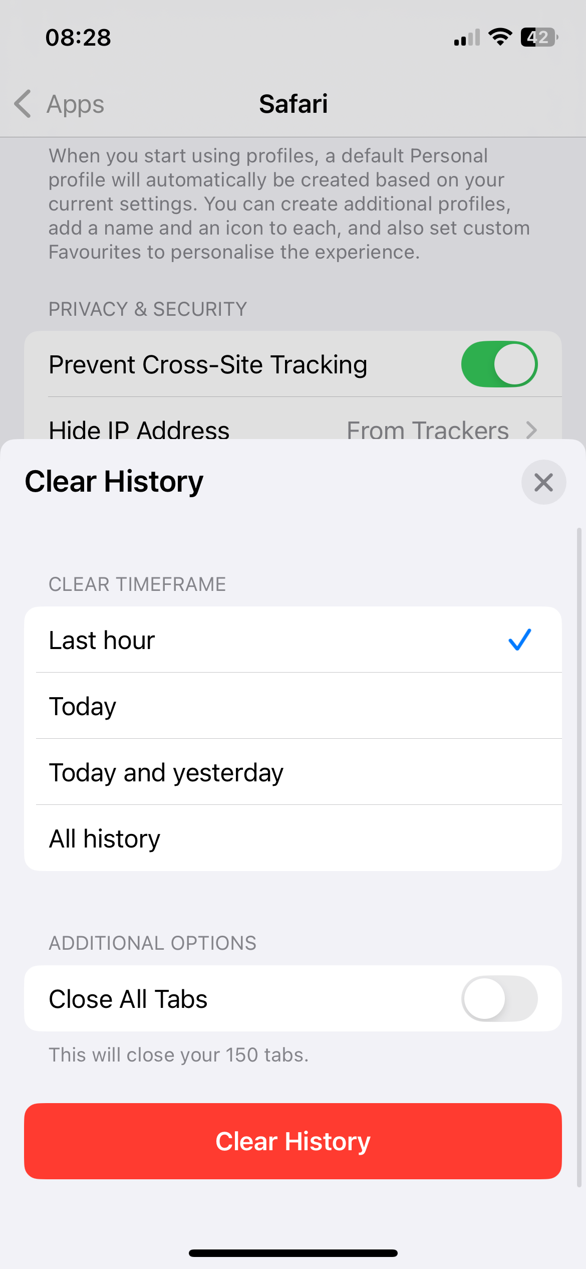 • At the bottom, tap "Clear Browsing Data" to proceed with the deletion.