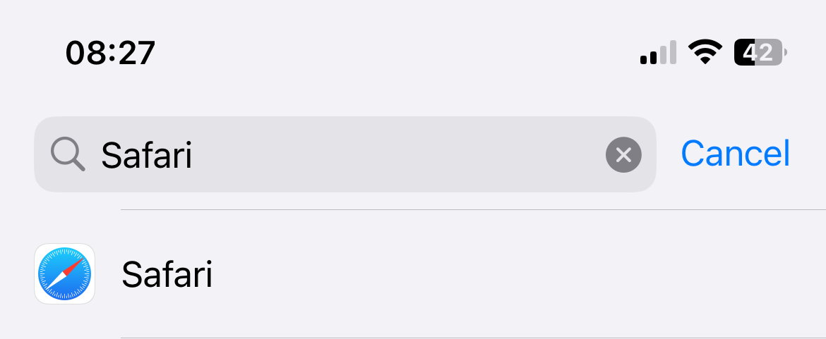 • Search for "Safari" in the search bar and access the one that refers to the application: