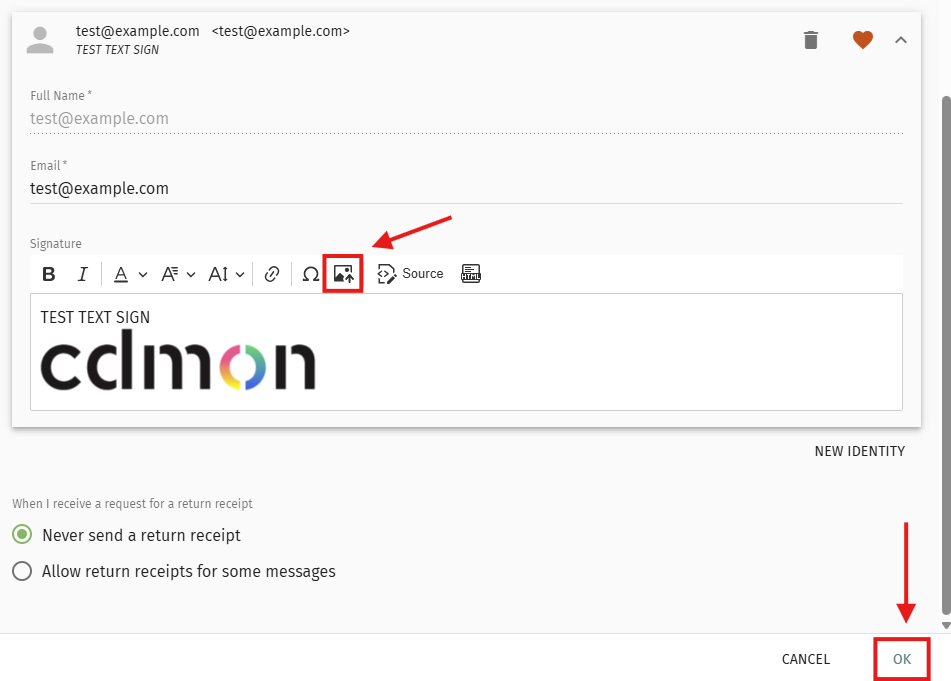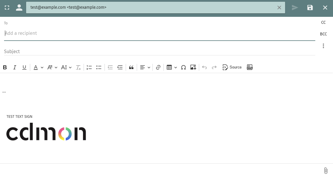 NOTE: Some webmail clients (such as Gmail, Outlook, etc.) may display visual errors with the attached image. Alternatively, you can use the SOGo HTML editor option and insert the image via a public URL (for example: https://yourdomain.com/logo.png). This ensures that the format and size remain consistent when sending the email.