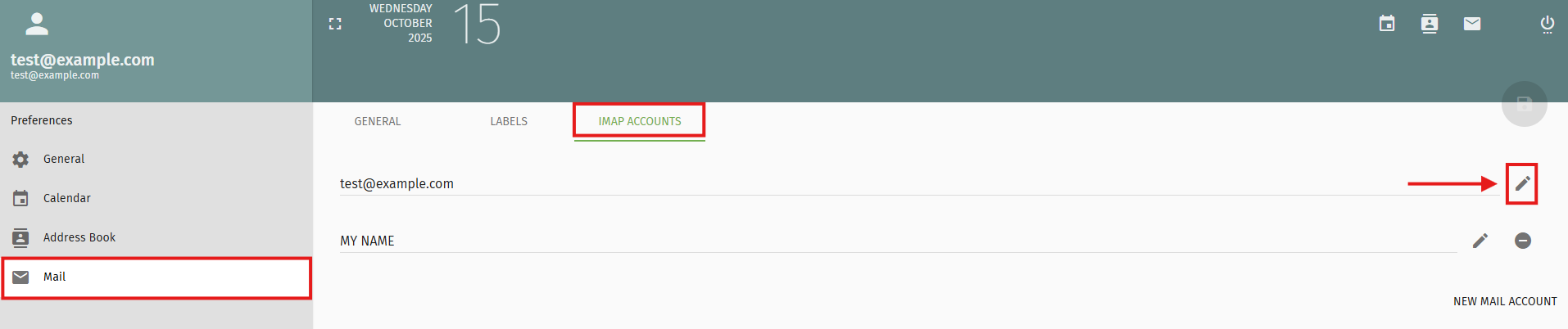 Go to Mail → IMAP ACCOUNTS