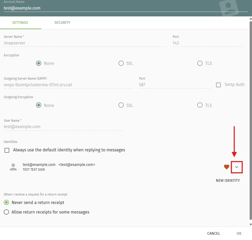 - Locate the Identities section and click the drop-down arrow to show the options for that identity.