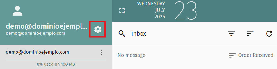 - Log in to your email account in SOGo. Once inside, go to the top left corner and click on the settings icon:
