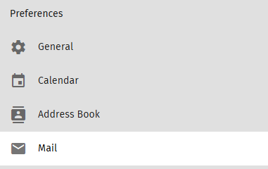 - In the Preferences/Settings panel, select Mail.