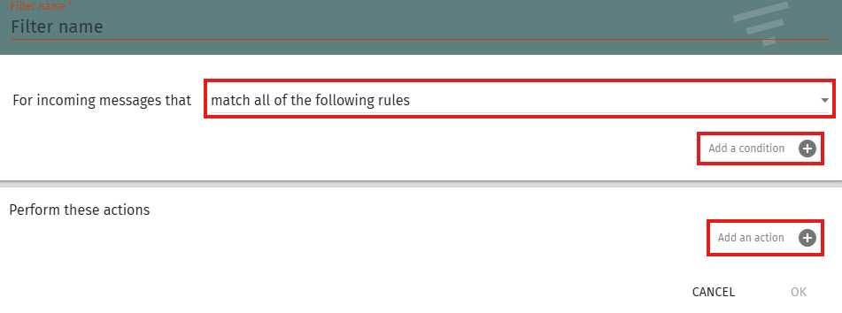 - For incoming messages that: Choose how the filter rules will be applied: