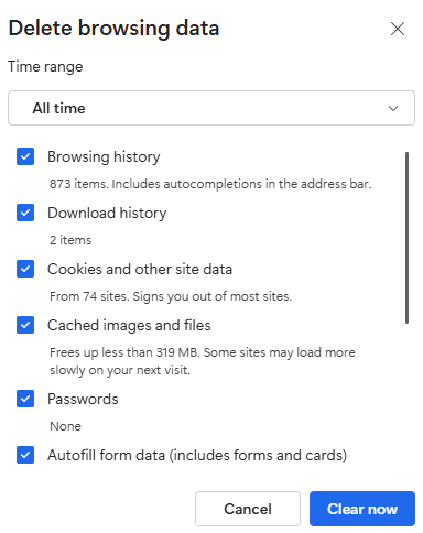 3. At the top, choose a time range. To delete everything, select All time.
