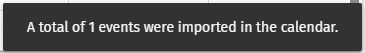 - Once the import is complete, a confirmation message will appear in the bottom-right corner showing how many events were successfully added. You will now be able to see all events and dates in your calendar listed.