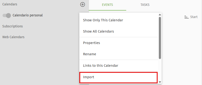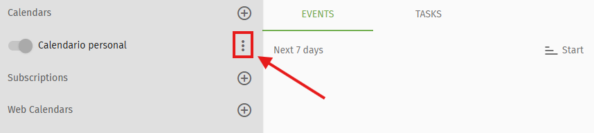 - Select the option Personal Calendar and click the vertical three-dot icon on its right. If none appears or you accidentally deleted it, you can create a new one: