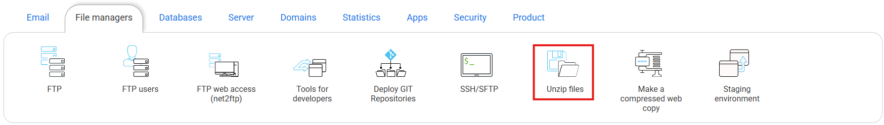 - From the hosting management section, look for "File managers" and select the option "Hosting for developers".