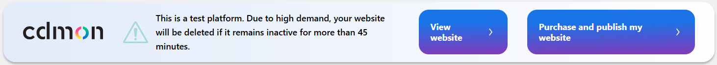 Important note: the demo has an inactivity limit. If the system detects 45 minutes without activity on the page, the generated content will be automatically deleted. If you want to keep the created site permanently, you will always have the option to purchase a WordPress Hosting plan with us and publish your website online.