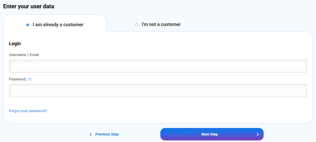If you are already a customer, log in with your cdmon username and you will be able to complete the purchase process.