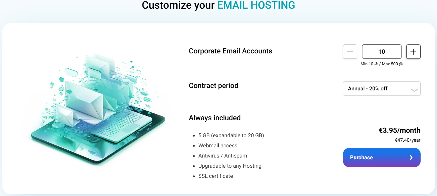 At cdmon, we offer a wide variety of products and services, including the possibility of creating email accounts under the domain name you prefer. If you only need the email service for a domain, you can contract it without the need to activate a website for that domain.