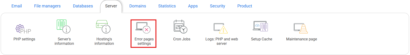 There are many types of server errors that may appear on your website and usually display a default server message. From the Control Panel, you can make this error message a custom page.