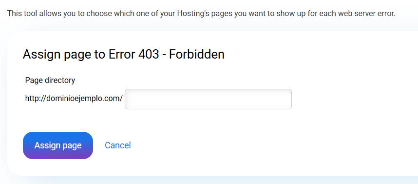 To assign a custom error page, click on Modify assigned page for the type of error you want to customize.