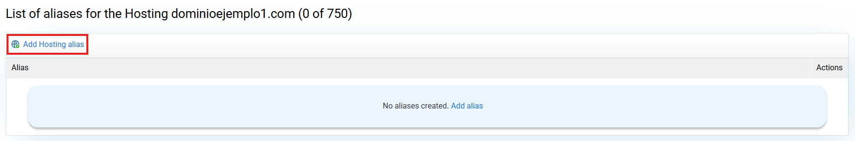 Click on Add hosting alias.