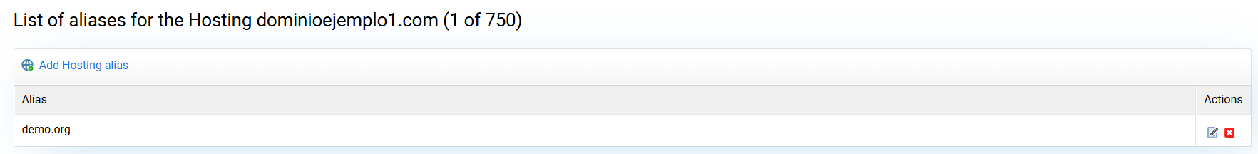 The created aliases appear in the list, from where you can edit or delete them: