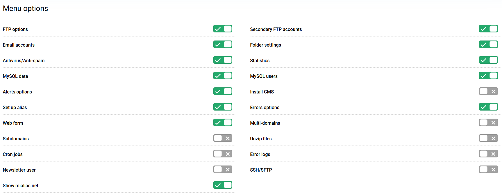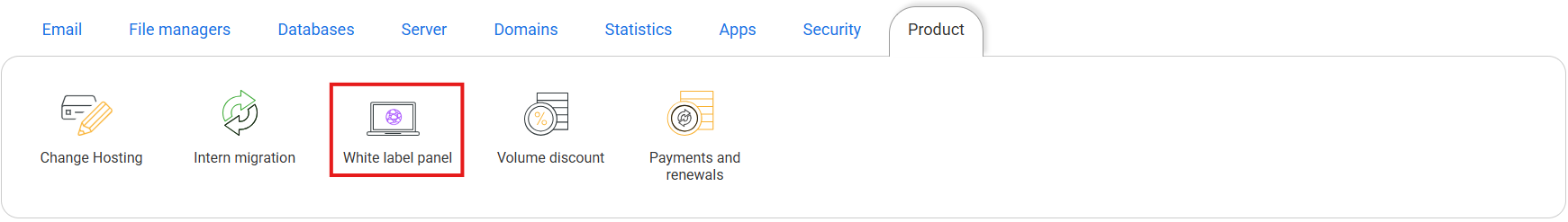 Using the menu manager you can enable the options you want to appear in the white label panel, you can turn the options listed on or off.