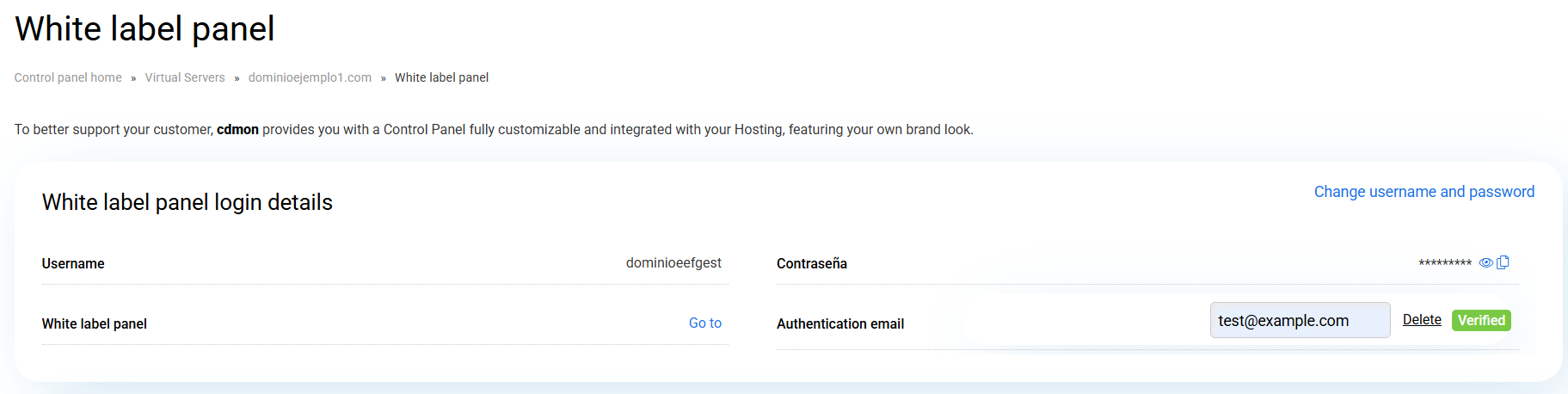 You can access the white label panel (Management) through the domain http://midominio.com/gestiona, to access use the access data you specified above.