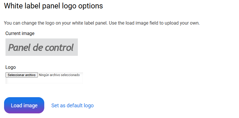 Here you can modify the image of the white mark panel logo. Just upload one image from "Select file" and then click on Upload image.