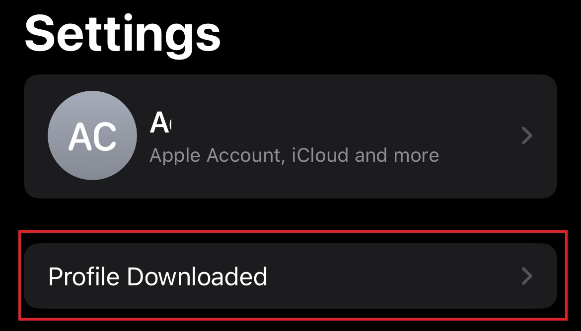- Open the Settings app on your iPhone/iPad. You’ll see the option "Profile Downloaded" just below your Apple ID: