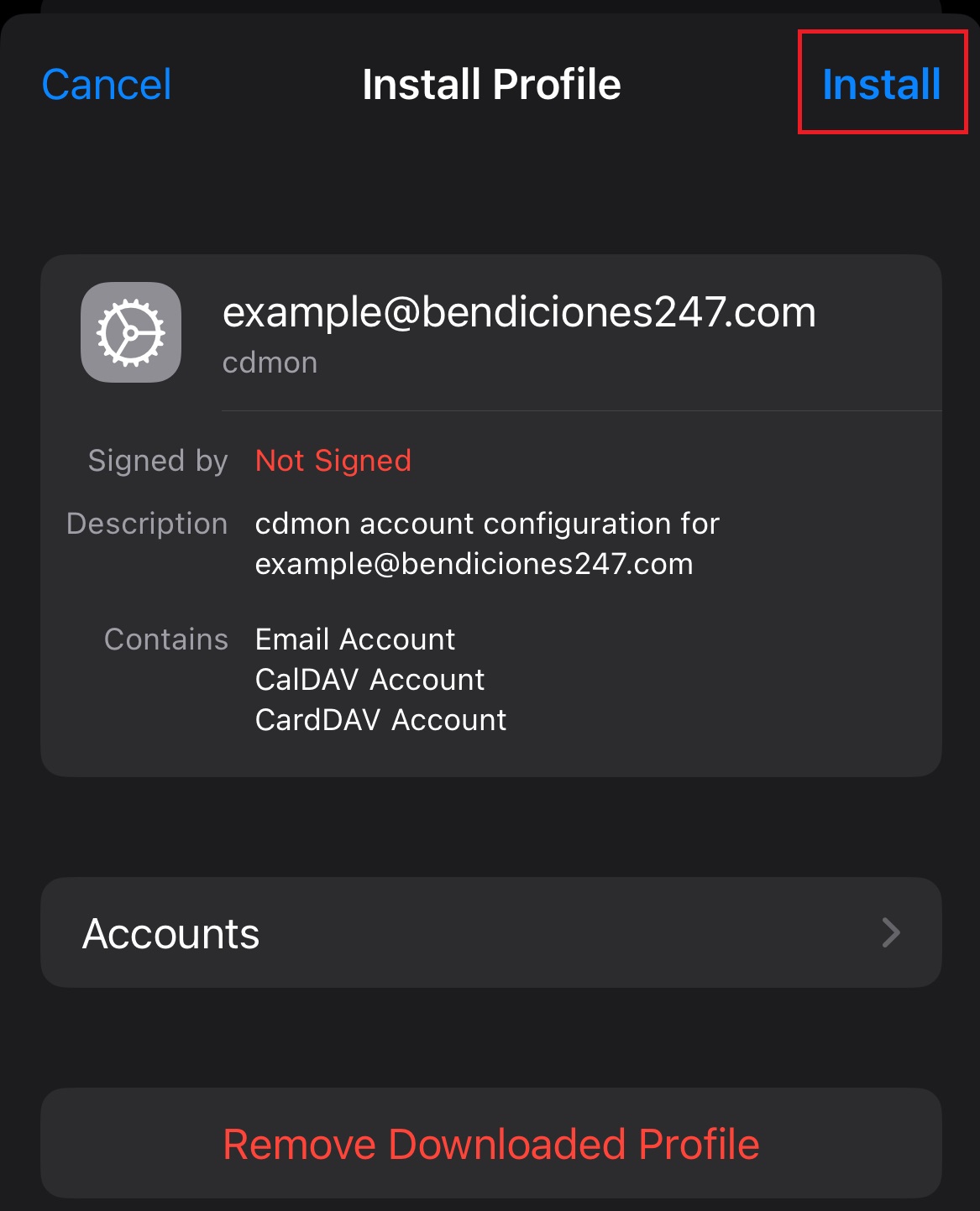 - You’ll see a message saying "Profile Installed" and your account will be fully configured.