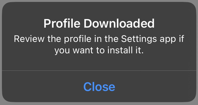 - You’ll see a confirmation that the profile has been downloaded. Tap "Close".