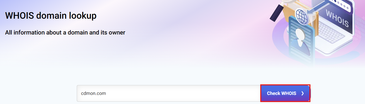 Next, you must enter the name of the domain for which you want to view the information. In this example, we have done it with cdmon.com: