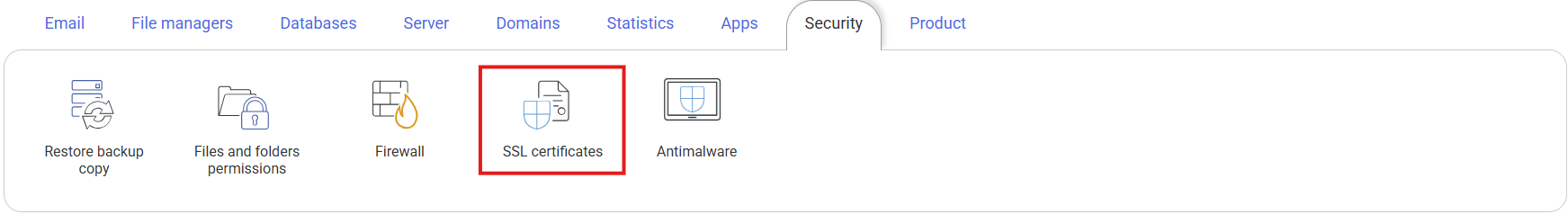 Go to the "Security" section and click on SSL Certificates: