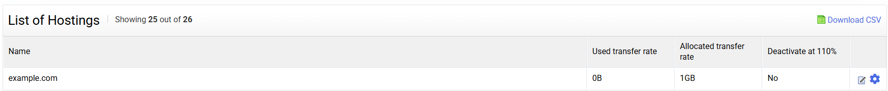 the hosting control panel is accessed. In this section you can also download in CSV format the list of their hosting.