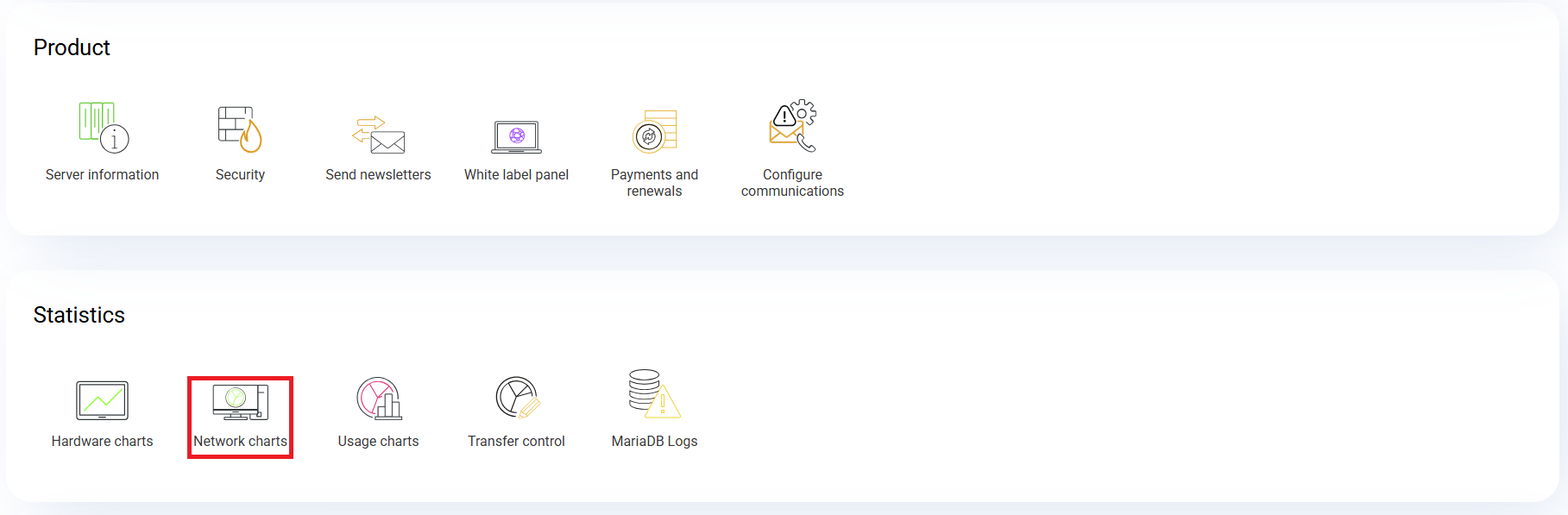 From your dashboard cdmon you can view the network charts on your Virtual Up server. Access Virtual management from your dashboard and click on the option Network charts.