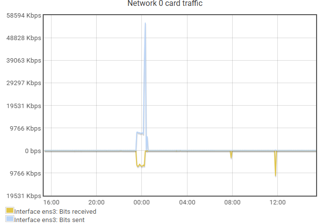 Network Card Traffic 1: Network charts of mouth 1 of the server's secondary network card. Mouth 1 is the connection to the virtual server intranet, where backup and other internal tasks are usually performed.