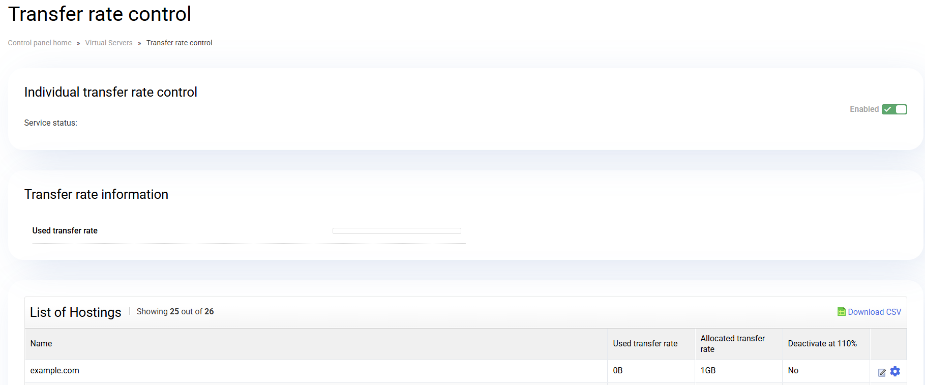 In this section, you can also download a CSV file with the list of all your hosting accounts.