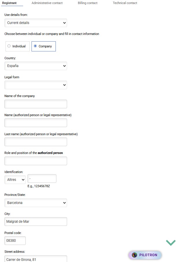 If you want to modify the data of the holder of a TLD domain (all extensions except .es), you can do so easily from the control panel of cdmon. The modification of the details of the name and/or email of the owner of a domain must be validated by the holder's current email account, and if the mail account is also changed, it must be validated. Such validation is carried out by means of a link sent to the account or both accounts.