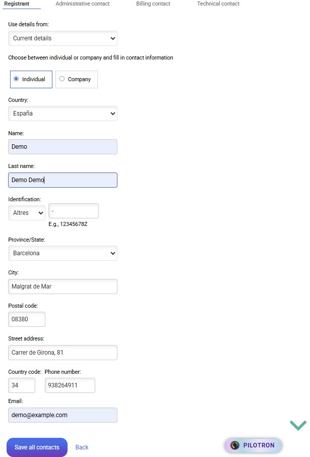 From that paragraph you have a form to modify the details of the Owner contact. You have two types of forms, one for individuals and one for organizations.