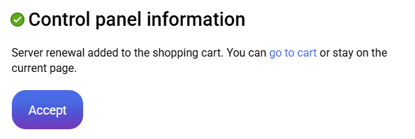 Access the management of your Virtual server from your cdmon control panel and click on the Renew option to add the Virtual server to the shopping cart.