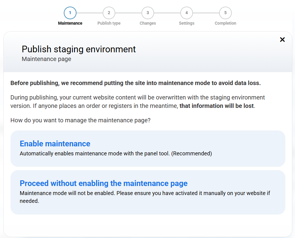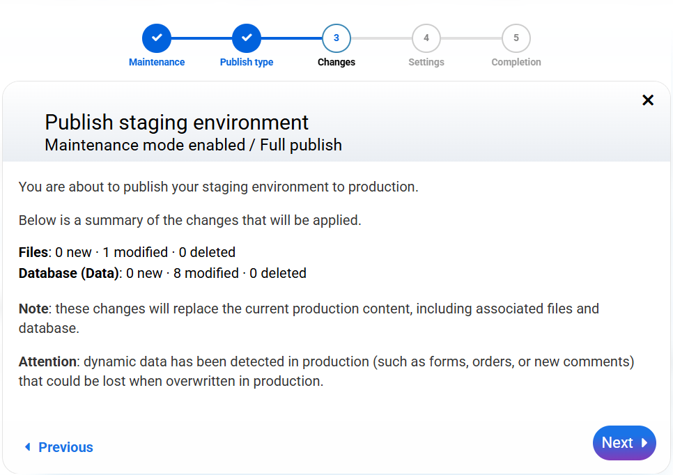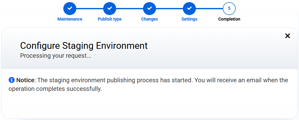 And you're done! The tool ofStagingallows you to work peacefully: you can test changes, update versions or test without affecting your website in production. In addition, an environment is generated fully functional, with up-to-date routes and free subdomain with SSL.