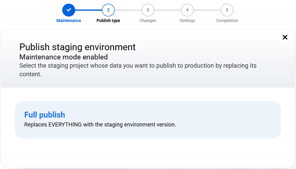 Custom environment: allows you to choose a specific folder from the server as the source of the staging.