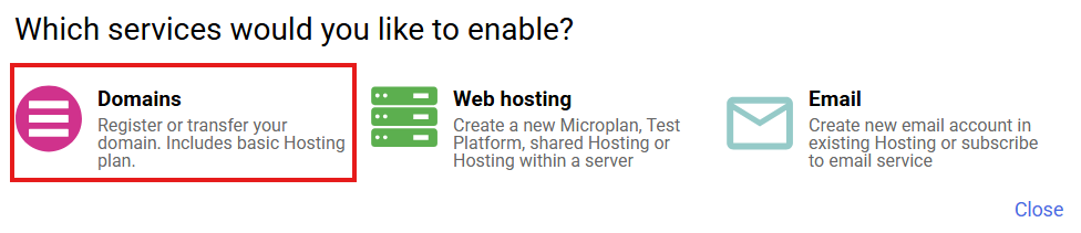 In the “New service registration” option, choose Domains.