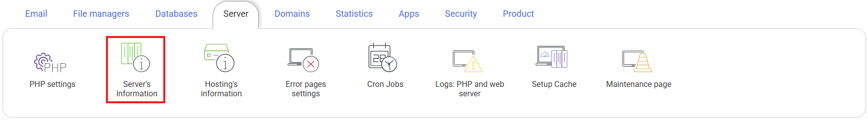 To do this, go to your hosting management section, in the Server column, and click on Server information: